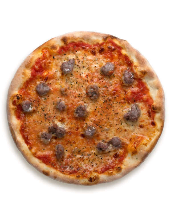 Pomodoro, mozzarella, salame dolce, salsiccia, origano